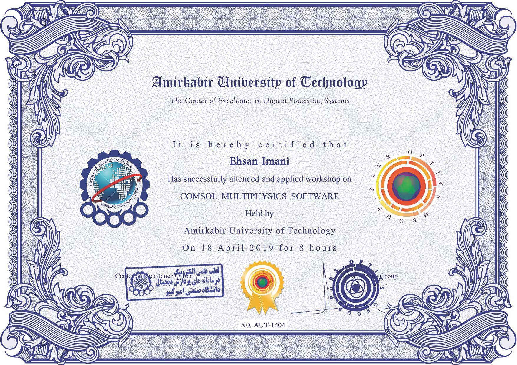 I was trained in COMSOL for 8 hours in a workshop. I learned how to simulate Optical geometry and work with the software.